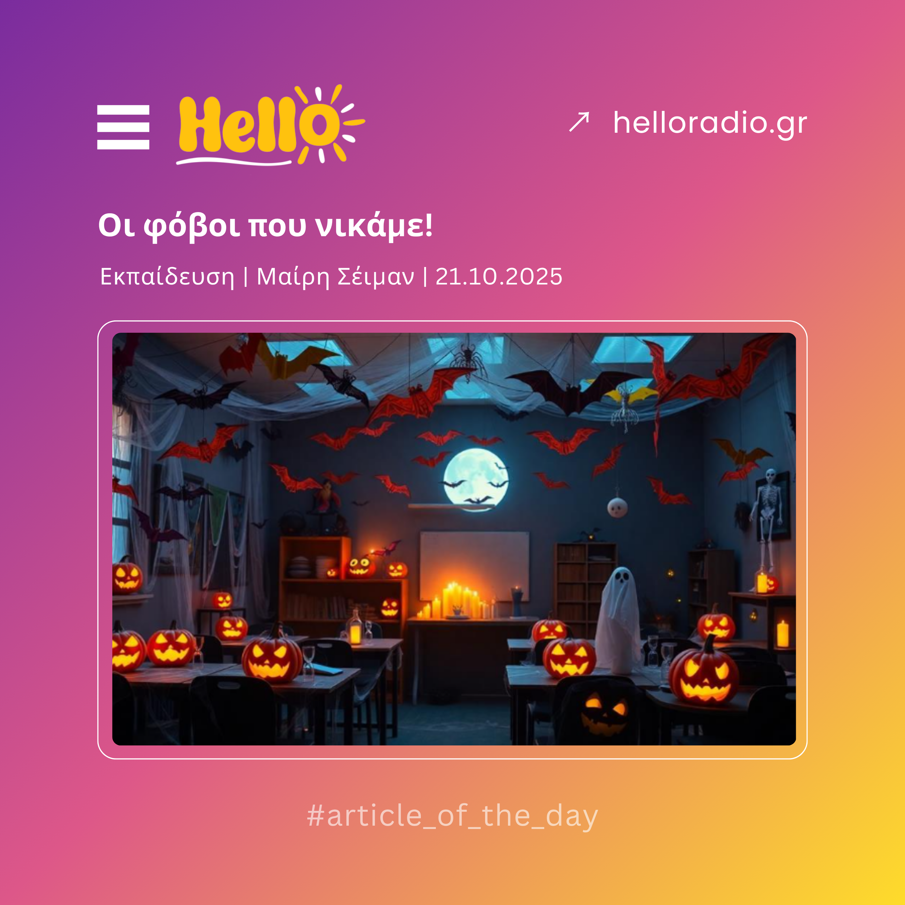 🎓 Ως εκπαιδευτικοί, βλέπουμε καθημερινά μικρούς “ήρωες” να νικούν τους δικούς τους φόβους. Το παιδί που σηκώνει χέρι πρώτη φορά στο μάθημα, παρόλο που η φωνή του τρέμει. Το παιδί που διαβάζει δυνατά μια παράγραφο, ενώ φοβάται ότι θα κάνει λάθος. Το παιδί που έρχεται χωρίς να ξέρει κανέναν και μέσα σε λίγες εβδομάδες βρίσκει φίλους. Αυτές οι μικρές στιγμές είναι τα αληθινά Halloween της εκπαίδευσης — μικρές “μάχες” ανάμεσα στο σκοτάδι της αμφιβολίας και το φως της αυτοπεποίθησης.
