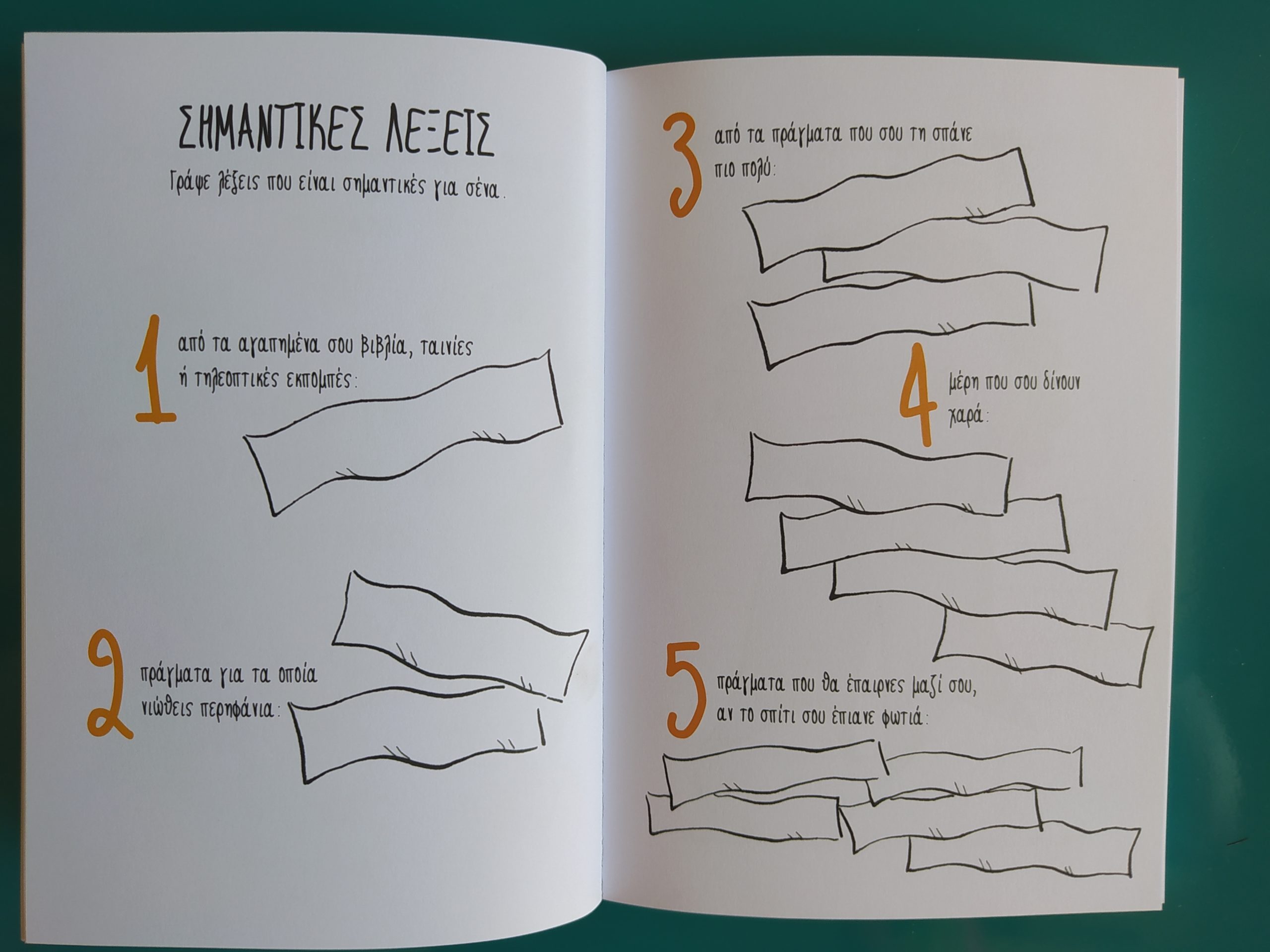 Έχουμε την τύχη, η γλώσσα μας να είναι μια από τις πλουσιότερες, στον κόσμο, που προσφέρει εξαιρετικές δυνατότητες έκφρασης και διατύπωσης υψηλών και σαφών νοημάτων. Έχει πλαστικότητα, είναι άρτια και το μεγαλείο της είναι κοινά αποδεκτό από όλους. Στις σελίδες αυτού του σημειωματάριου, ο μικρός αναγνώστης καλείται να ακονίσει το μυαλό του, να ενεργοποιήσει τη φαντασία του και να βρει τις κατάλληλες λέξεις που του ζητώνται ανά προτεινόμενη δραστηριότητα.