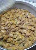Βάζουμε νερό και ένα πιάτο από πάνω να τα κρατήσει πιεσμένα. Σιγοβράζουμε μέχρι να γίνει το ρύζι.