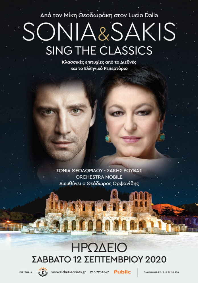 Η διεθνούς φήμης σοπράνο Σόνια Θεοδωρίδου και ο κορυφαίος Έλληνας ποπ σταρ Σάκης Ρουβάς, στην πιο δημιουργική και ώριμη στιγμή του, θα ενώσουν τις υπέροχες φωνές τους για πρώτη φορά μαζί στο Ηρώδειο, πλαισιωμένοι από την Oρχήστρα Mobile, υπό την καθοδήγηση του Μαέστρου Θεόδωρου Ορφανίδη.